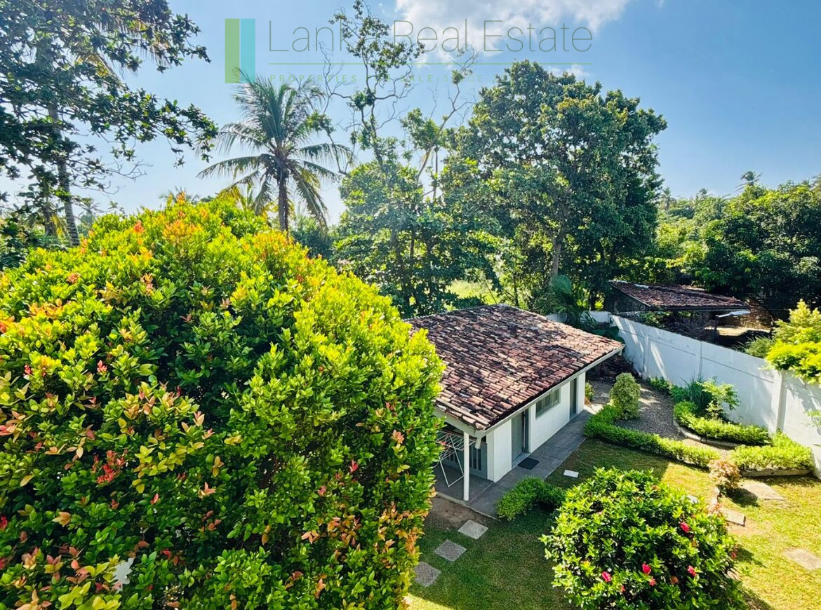 Sitting on a walled and gated 30 perch plot, the villa is approximately 600 metres off the main road down a decent local road. The beach is a scant 200m away. The neighbourhood is predominantly villas and residential houses.