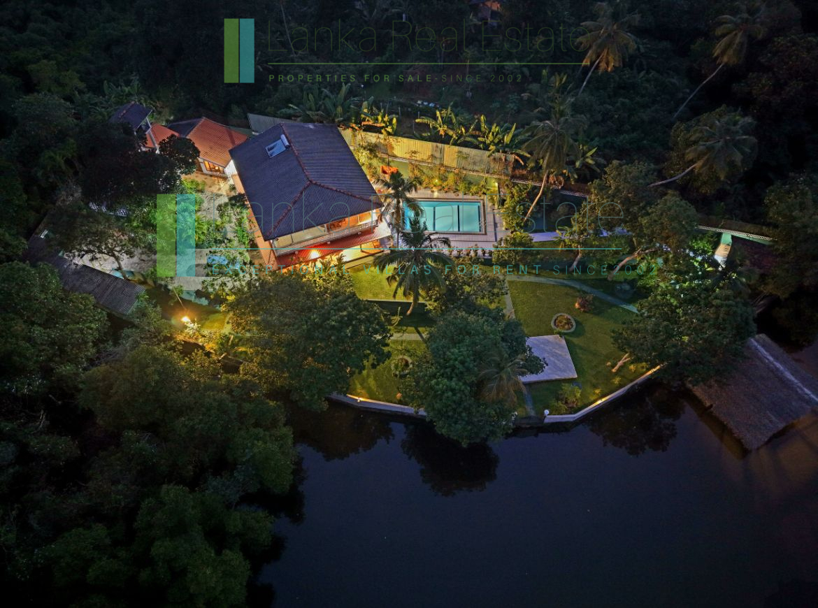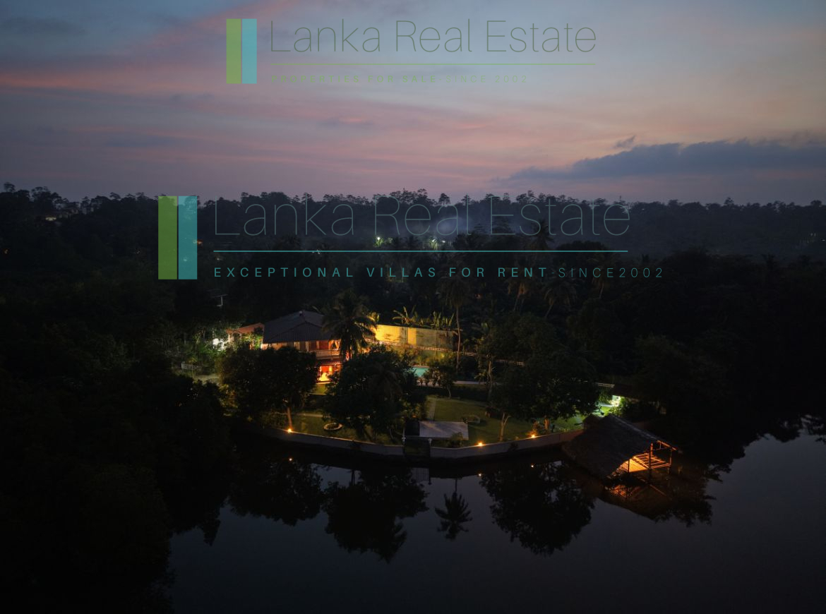 This tranquil lakeside villa offers an opportunity to own a very private paradise on Sri Lanka’s South Coast. Located just 2.5km from vibrant Hikkaduwa town and beach, this hidden sanctuary features 120 meters of shoreline on the aptly named ‘Bird Lake’. The property benefits from its own jetty (and a boat which is included in the sale) as well as a Finnish “smoke” sauna. This villa offers complete privacy with the nearest neighbours being some 100m distant.