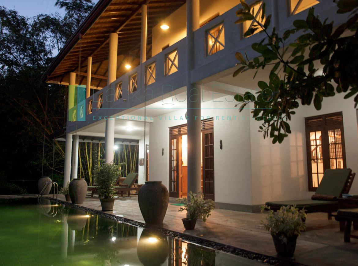 Tranquil villa on Rathgama Lagoon just 10 minutes from Hikkaduwa. With three ensuite bedrooms, a generous pool and direct lagoon access, this architect-designed property has been run successfully as a holiday villa/retreat for eleven years and is being sold as a going concern. Apart from a few paintings and other personal items, the property is being sold fully furnished and equipped.