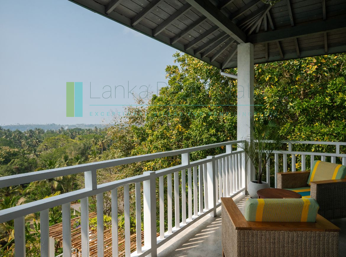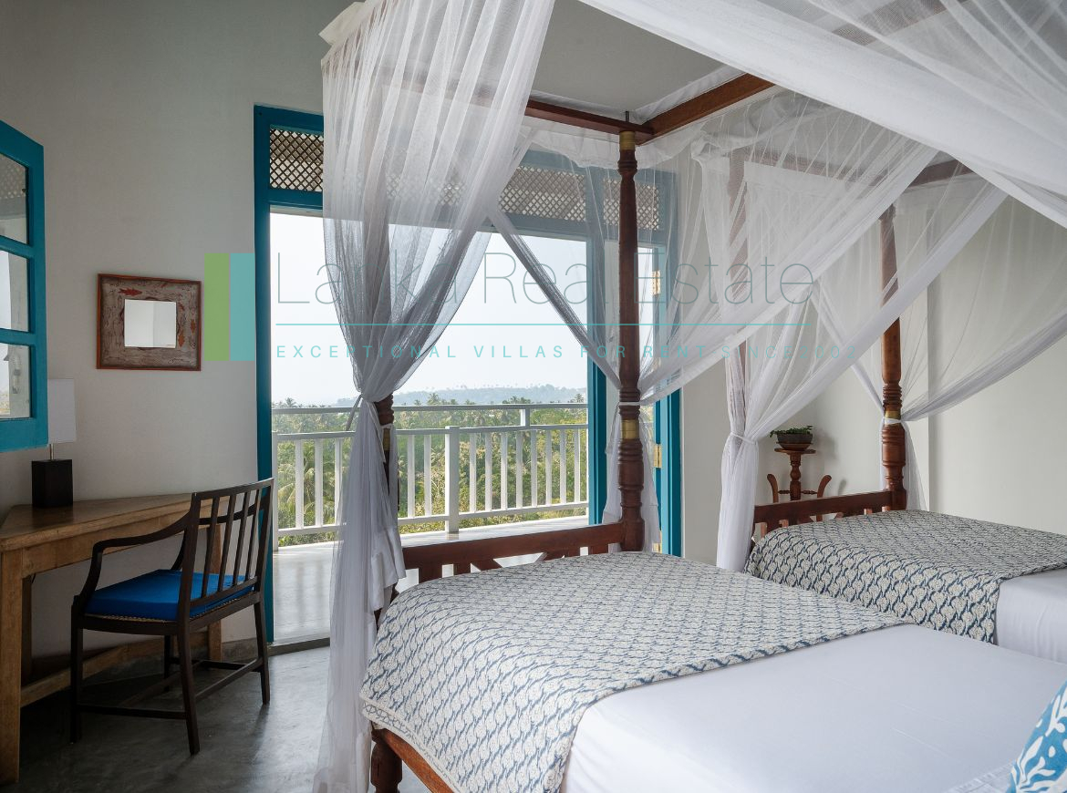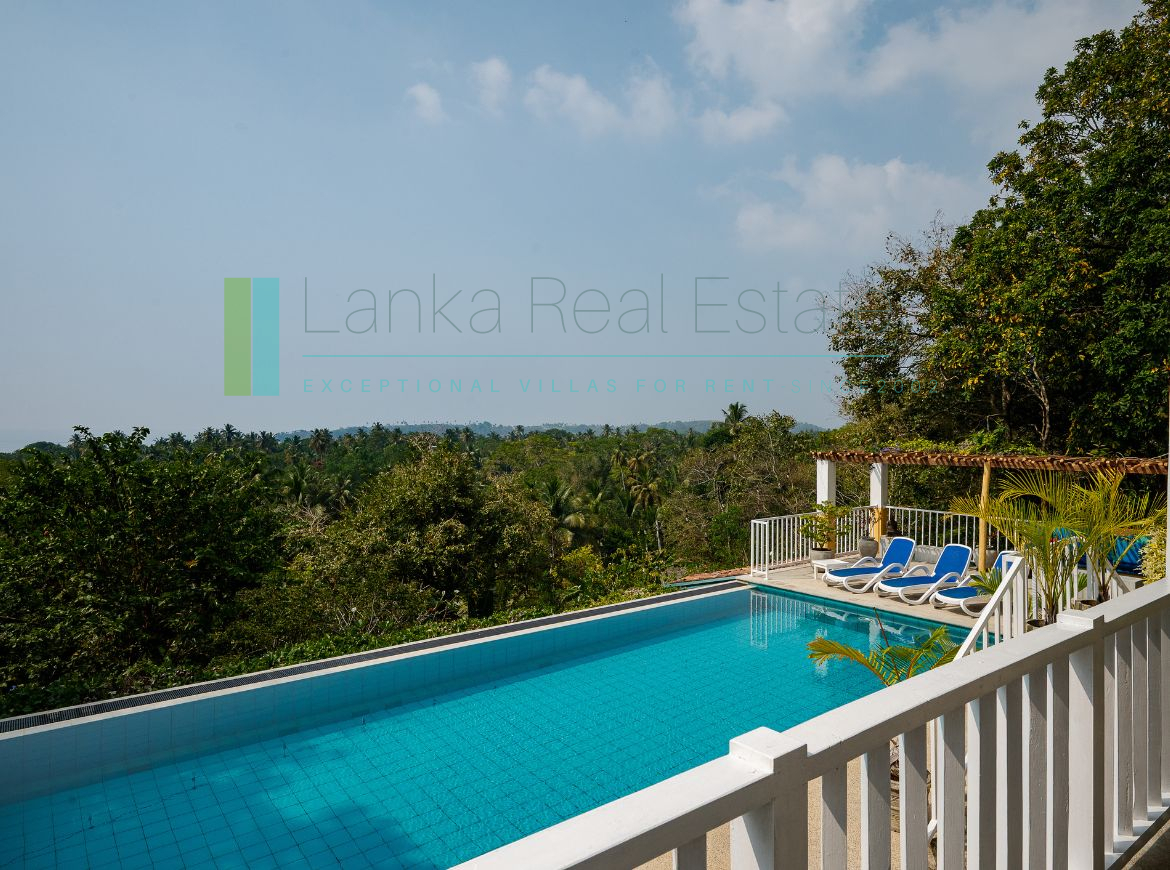 Recently built villa in immaculate condition located a short stroll from the golden sands of Mawella Beach. On a generous plot of just over one and a half acres the property has four en-suite bedrooms and a fabulous pool. The plot is well-elevated, benefits from cooling breezes, is not overlooked and sits on a no-through road so offers privacy and minimal disturbance from traffic. There are great ocean views from all levels, including from the principal bedrooms. In addition the terraced garden has its own access to the Seenimodera River.