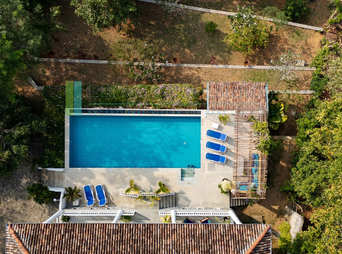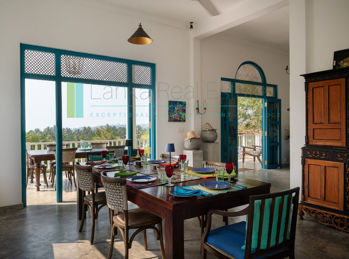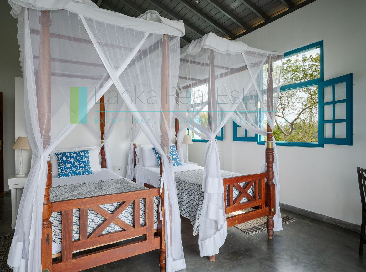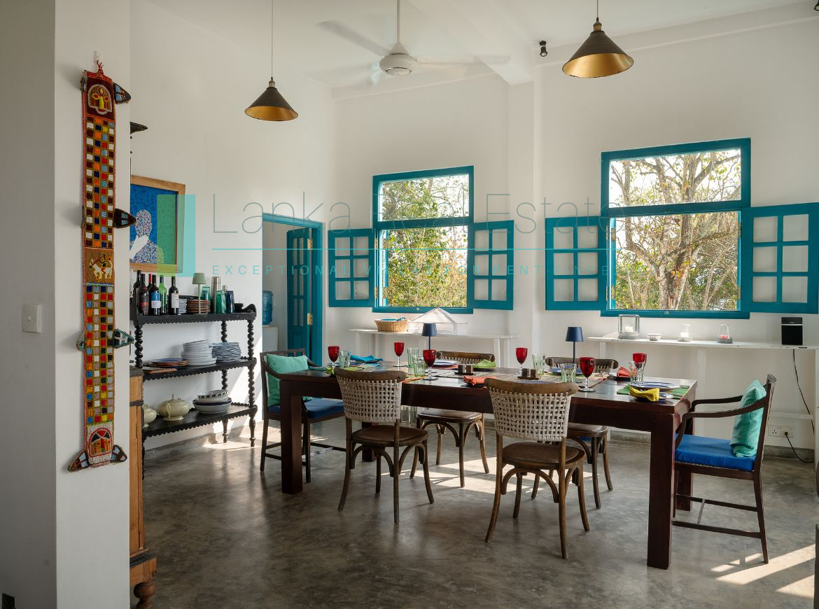 Recently built villa in immaculate condition located a short stroll from the golden sands of Mawella Beach. On a generous plot of just over one and a half acres the property has four en-suite bedrooms and a fabulous pool. The plot is well-elevated, benefits from cooling breezes, is not overlooked and sits on a no-through road so offers privacy and minimal disturbance from traffic. There are great ocean views from all levels, including from the principal bedrooms. In addition the terraced garden has its own access to the Seenimodera River.